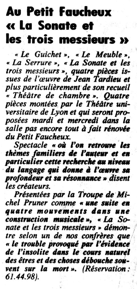 37, Petit Faucheux (37) Théâtre universitaire de Lyon « La Sonate et les trois messieurs » (16 et 17/03/82)