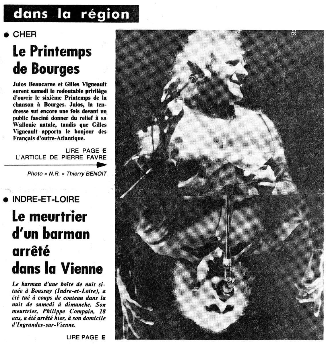 Document : Nouvelle République du Centre-Ouest, 05/04/1982 / Auteur : Pierre Favre / Photo : Thierry Benoit / Collection : Archives départementales 37 / Numérisation par David Euthanasie