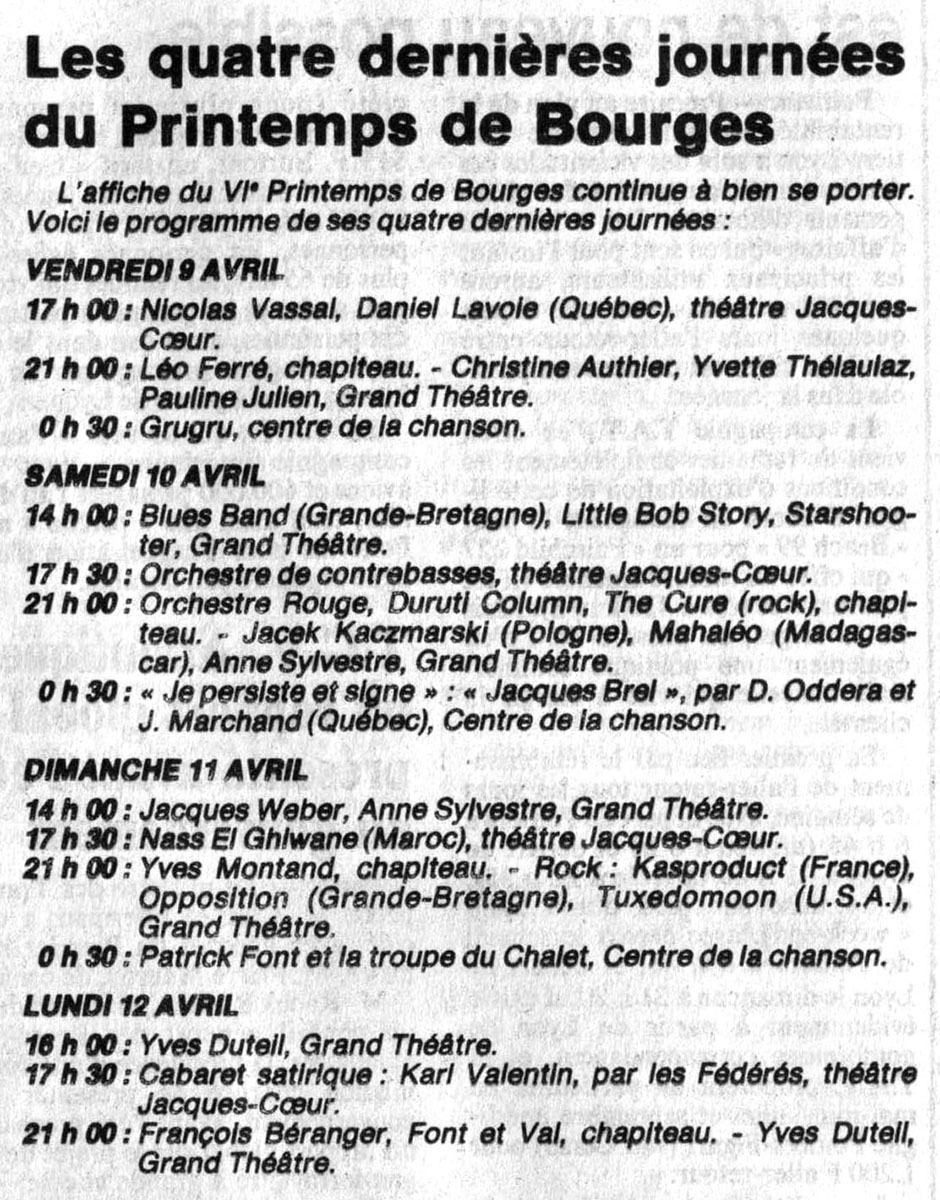 « Printemps de Bourges » (03 au 12/04/83)