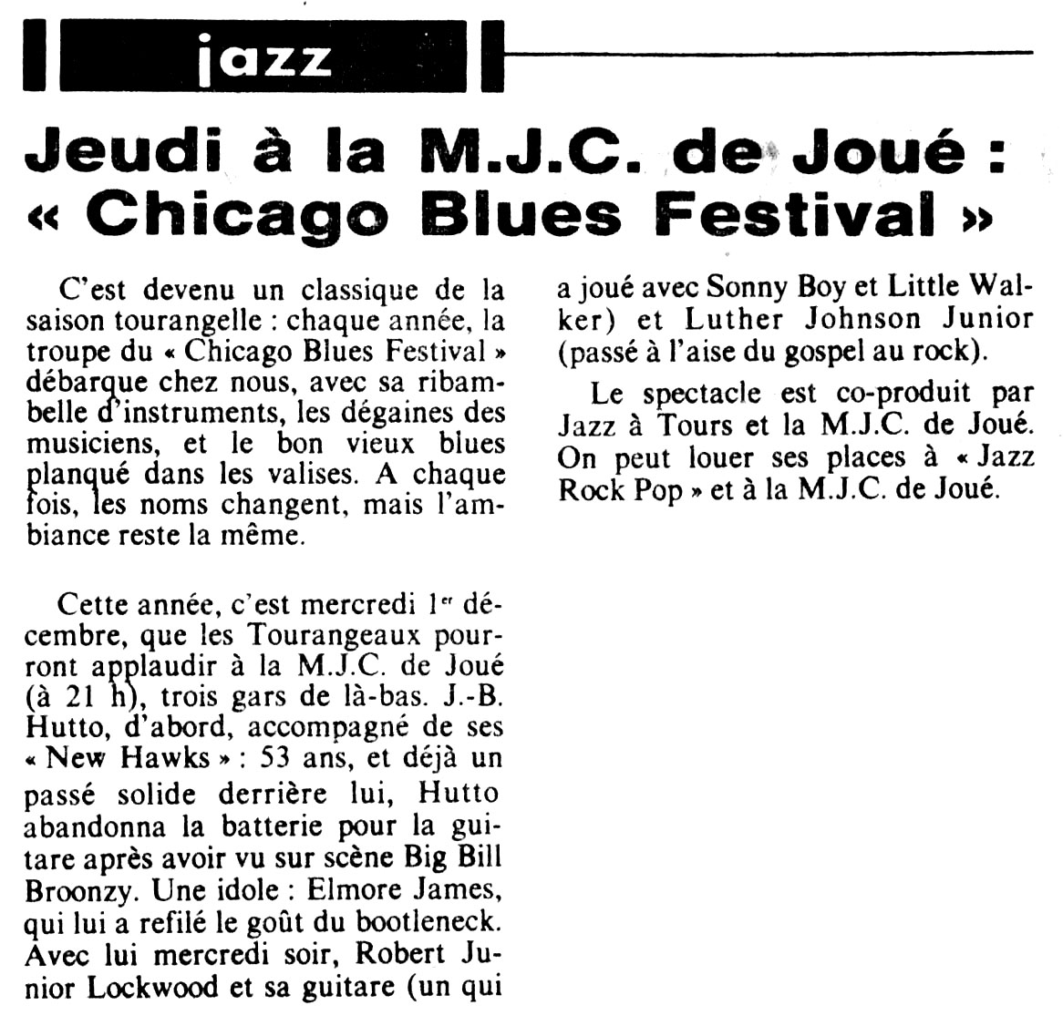 37, Chicago Blues Festival, jazz a Tours, MJC Joue- les-Tours (37) « Chicago Blues Festival » (01/12/82)