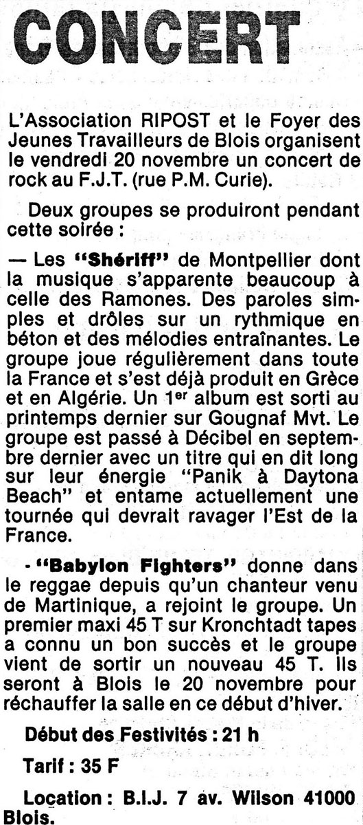 - Acteurs participants : Les Shériffs, Babylon Fighters