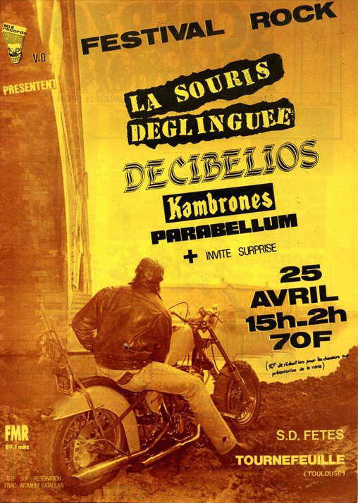 31, decibelios, Kambrones, La Souris Déglinguée, Mix Records, Parabellum, salle des fetes tournefeuille La Souris Déglinguée, Décibelios, Kambrones, Parabellum (25/04/87)