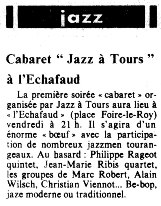 37, jazz a Tours, Jean-Marie Ribis, Philippe Rageot, Theleme Tanneurs (37) Quintette de Philippe Rageot, Quartet I (25/05/82)