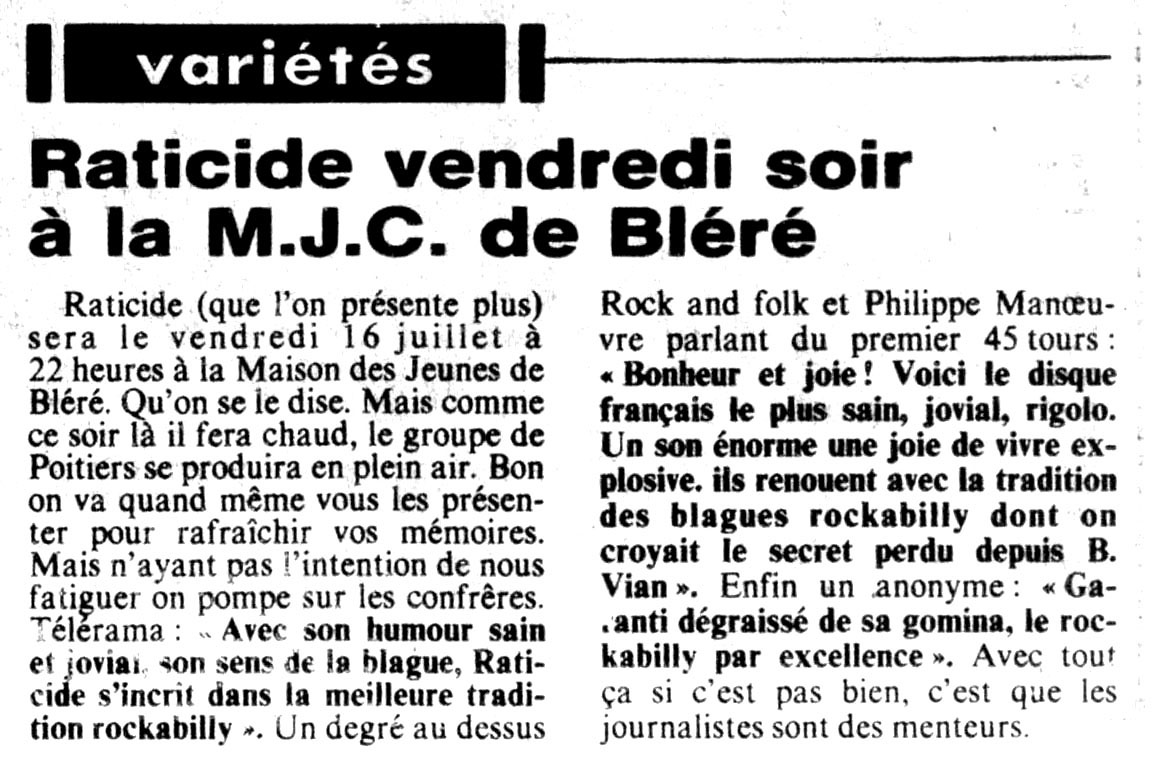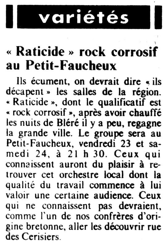86, Confort Moderne (86), Oreille est Hardie, Raticide, Satellites Raticide, les Satellites (30/03/88)
