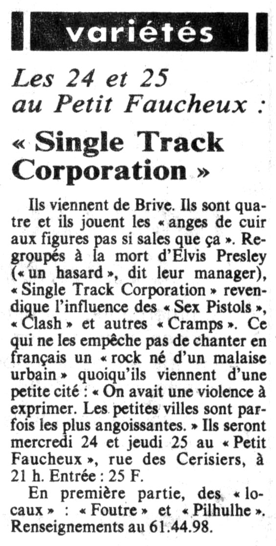 37, Foutre, Petit Faucheux (37), Pilhulle, Single Track Single Track Corporation, Foutre, Pilhule (24 et 25/11/82)